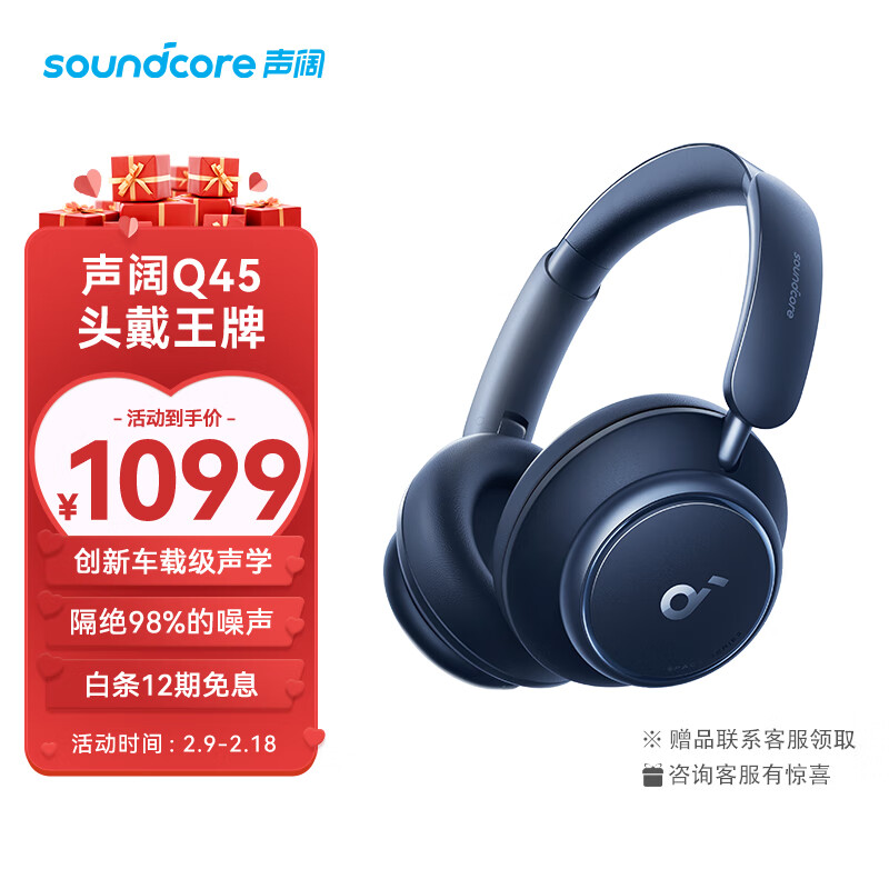 声阔Soundcore Space Q45声阔头戴式无线蓝牙耳机三重动态滤噪适用苹果/华为手机蓝色价格:1099.00元!