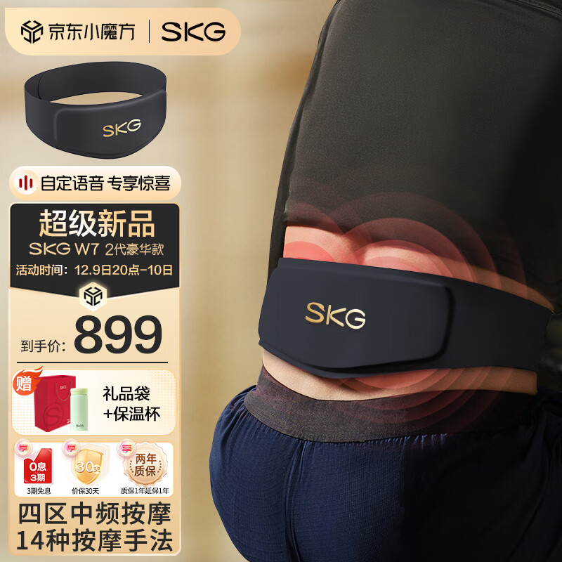 skg腰部按摩仪 四区揉捏缓解酸累 智能按摩器腰带可拆洗 送男女友圣诞节生日礼物 W7二代豪华款子夜蓝价格:1049.00元!