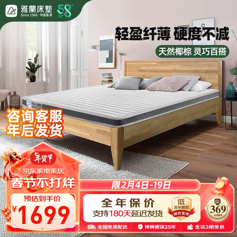 雅兰(AIRLAND)床垫舒脊偏硬棕垫宿舍床垫子 硬核乳胶椰棕款【7cm】1.8米*2米价格:1999.00元!