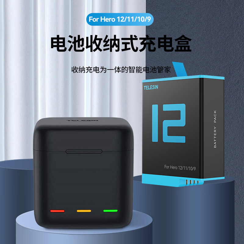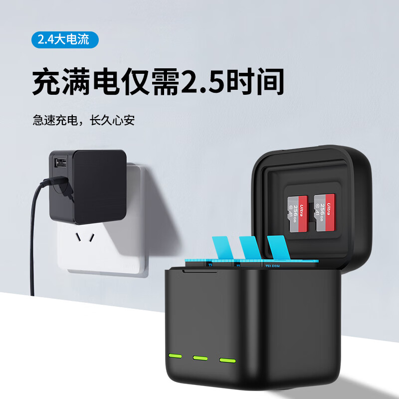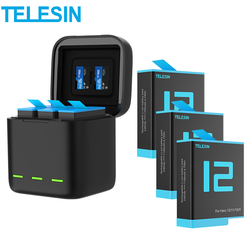 TELESIN适配gopro11 12电池适用gopro10 9电池充电器三充充电盒内存卡电池收纳盒2.4A快充三电一充套装价格:329.00元!