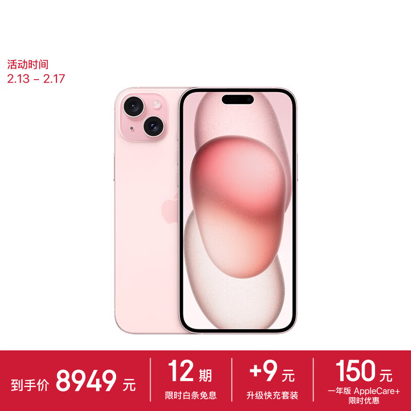 Apple/苹果 iPhone 15 Plus (A3096) 512GB 粉色支持移动联通电信5G 双卡双待手机价格:9199.00元!