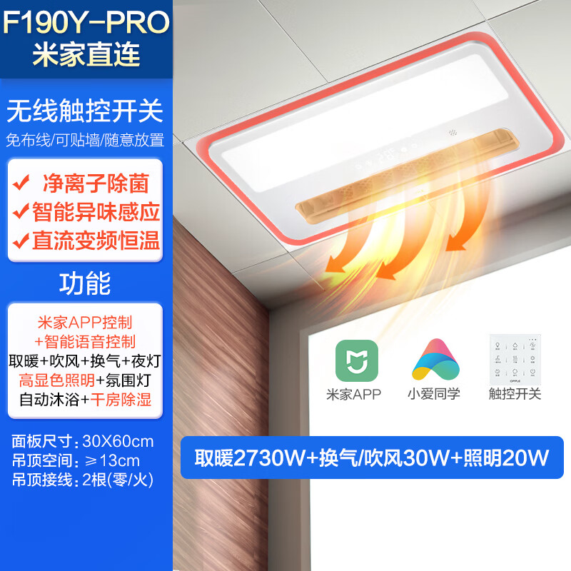欧普(OPPLE)风暖浴霸集成直流杀菌米家智控JDSF190Y PRO-BP价格:1399.00元!