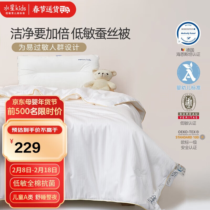 水星儿童(MERCURY Kids)水星家纺 A+低致敏全棉抗菌蚕丝春秋被120cm×150cm A类【礼盒装】价格:369.00元!
