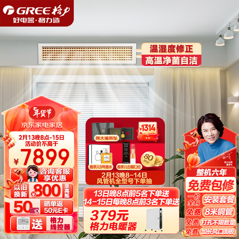 格力(GREE)中央空调 风管机一拖一 2匹家用嵌入式空调 1级能效冷暖FGR5Pd/C3Nh-N1 京仓派送(一价全包)价格:7895.00元!