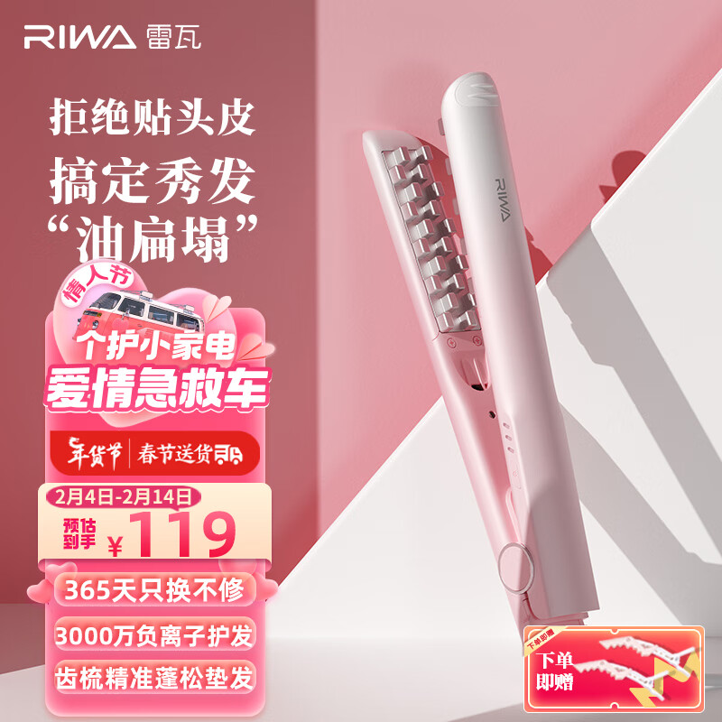 雷瓦(RIWA)玉米须夹板垫发根负离子玉米烫夹板发根蓬松器 头发蓬松神器负离子卷发棒 懒人烫发器直板夹8335价格:124.00元!