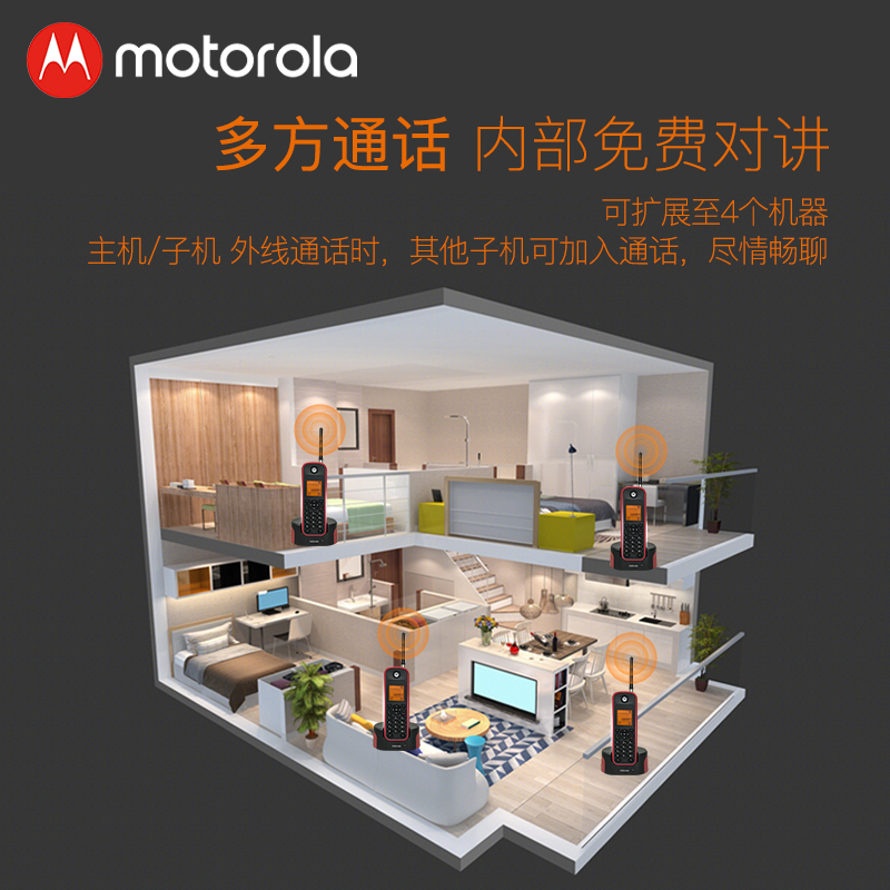 摩托罗拉(Motorola)远距离数字无绳电话机 无线座机 子母机单机 办公家用 中英文可扩展别墅定制O201C(黑色)价格:599.00元!