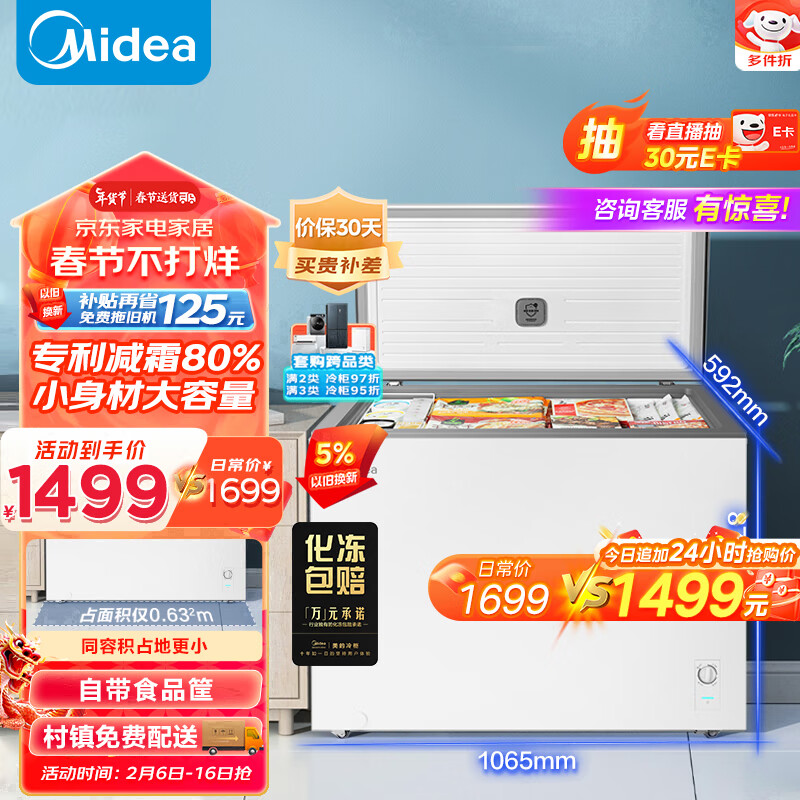 美的(Midea)300升 商用家用卧式大冷冻囤货冰柜 大容量冷藏冷冻转换冷柜 卧式冰箱 BD/BC-300KM(E) 以旧换新价格:1599.00元!