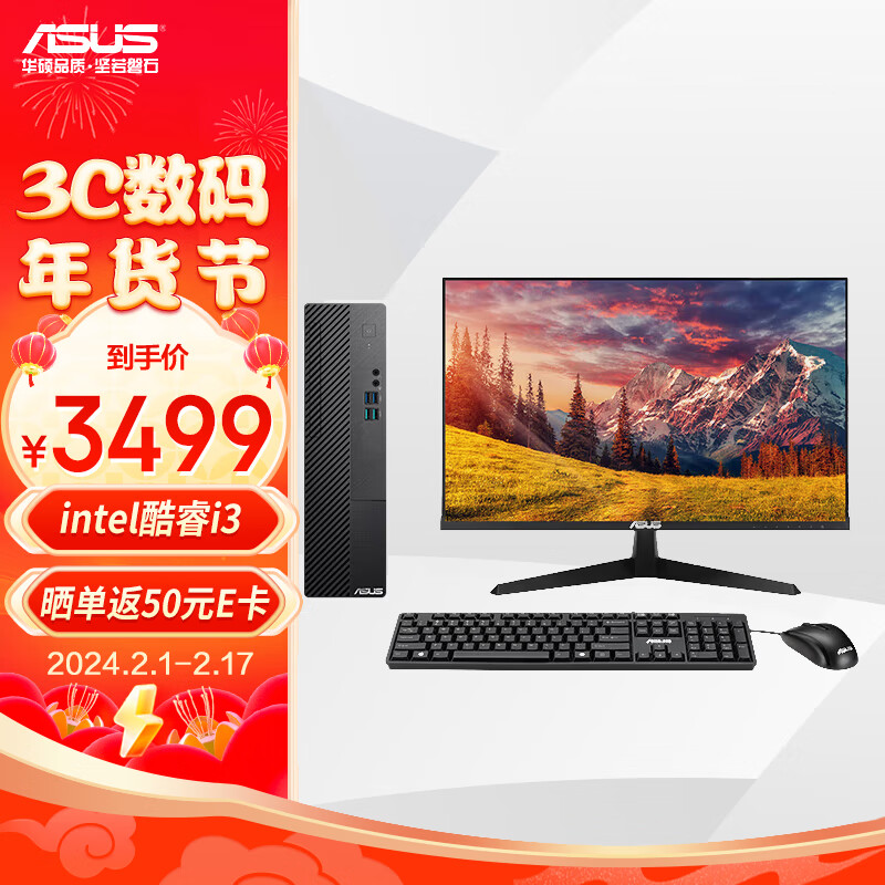 华硕破晓X 个人办公家用商用台式机电脑整机(酷睿13代i3-13100 16G 1TB SSD?小机箱)23.8英寸显示器价格:3499.00元!
