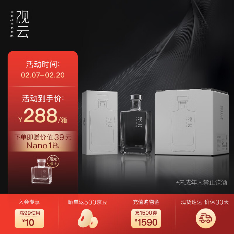 观云MINI精品小酒 浓香型白酒 52度 200ml*6瓶 整箱装 年货送礼 礼盒价格:294.00元!