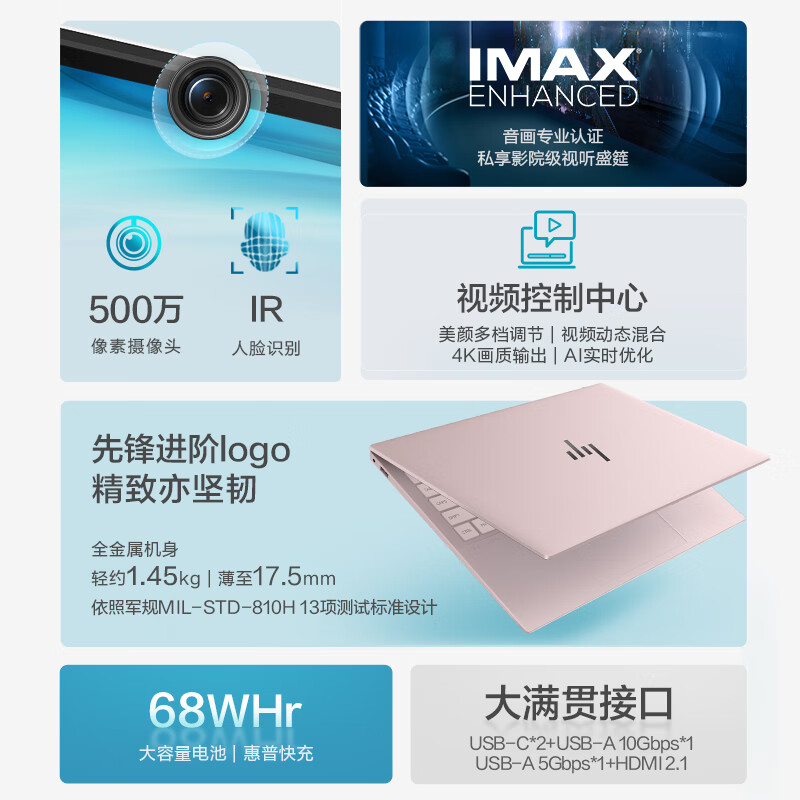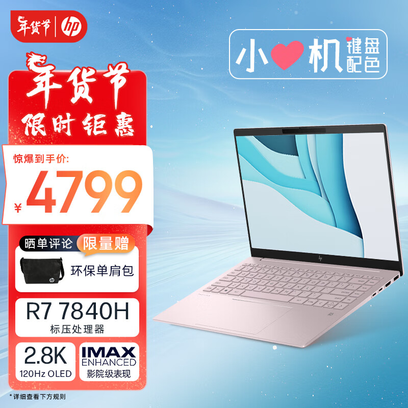 惠普HP 星Book Pro 14英寸轻薄办公笔记本电脑(锐龙R7-7840H LPDDR5X高频16G 1T 2.8K 120Hz OLED屏)粉价格:4799.00元!