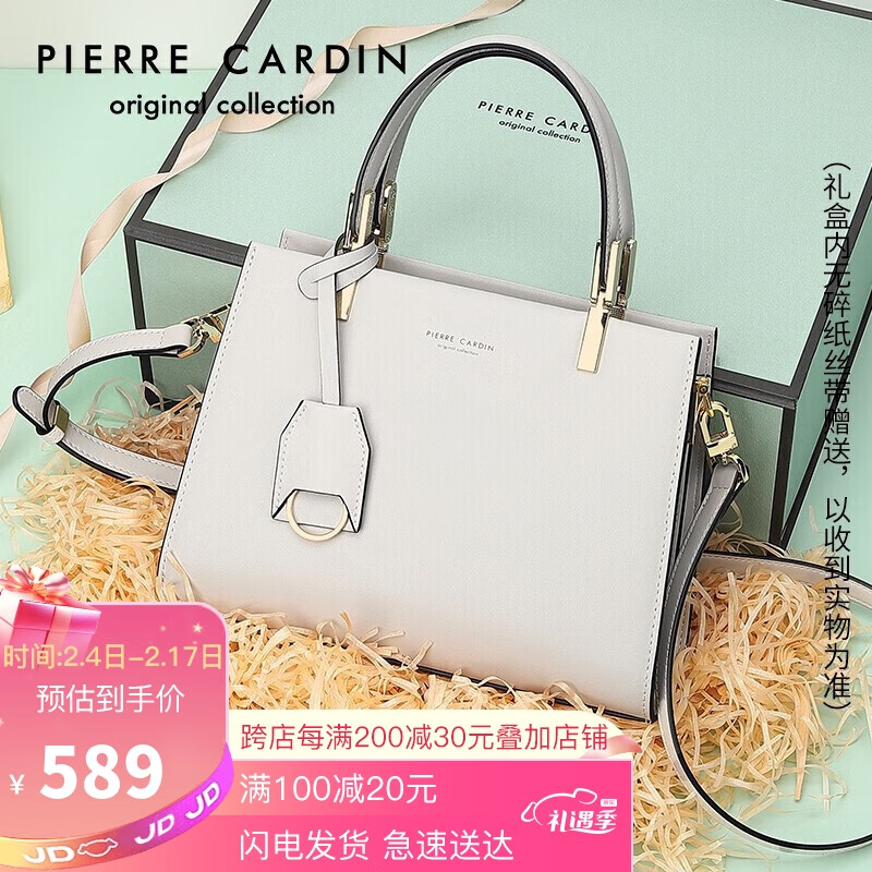 皮尔卡丹(pierre cardin)时尚包包女包百搭单肩斜挎包女简约牛皮手提包女士礼盒装 J2A244-110202P米白色生日礼物情人节礼物送女友老婆价格:699.00元!