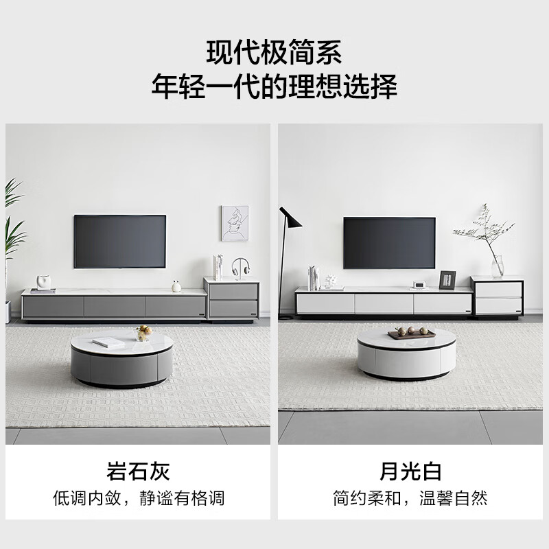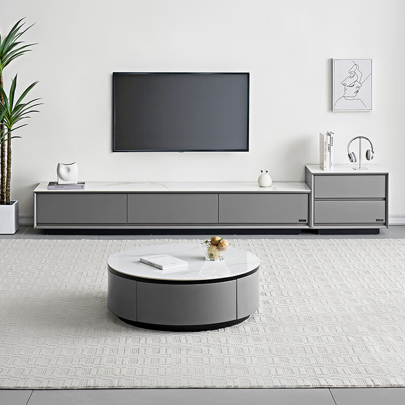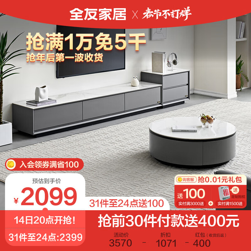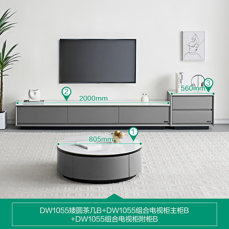 全友家居 岩板茶几电视柜组合现代简约客厅家用圆形茶几边几DW1055B价格:3570.00元!