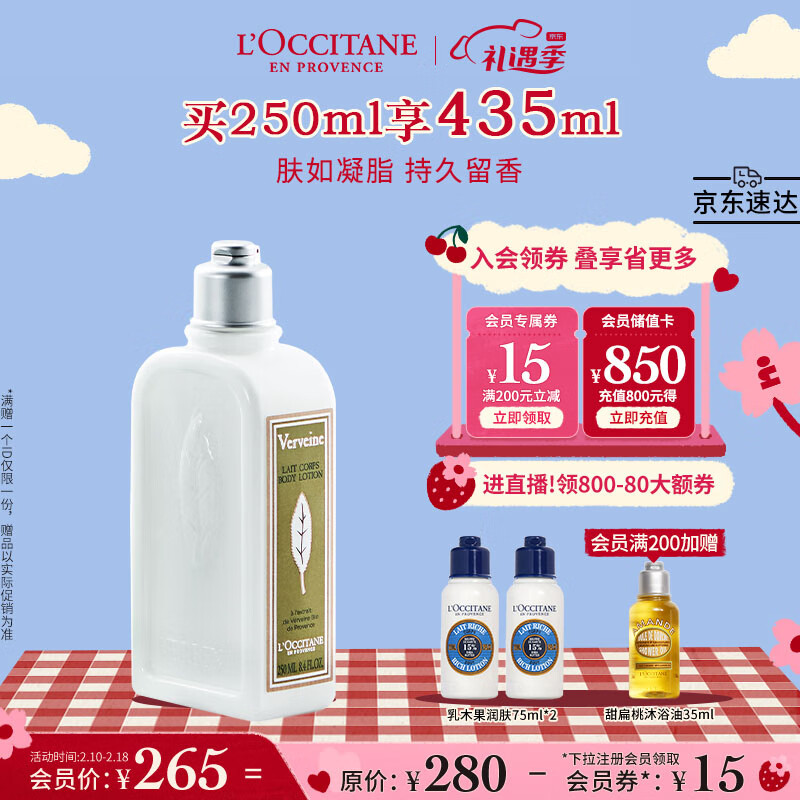 欧舒丹马鞭草清新润肤露250ml清爽保湿温和留香情人节送男女友新年礼物价格:280.00元!