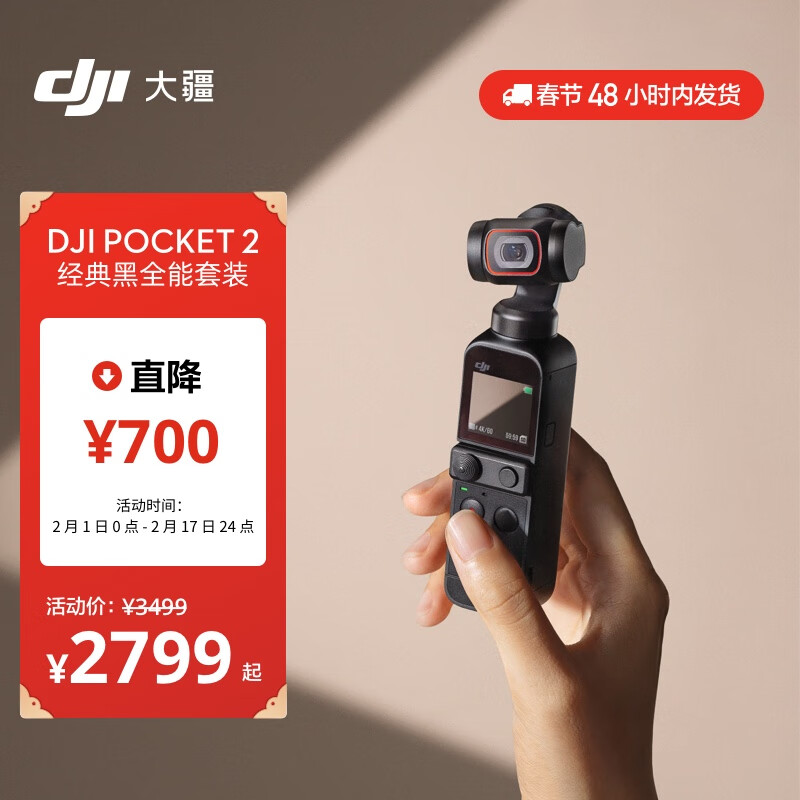 大疆 DJI Pocket 2 全能套装灵眸云台vlog全景相机 小型户外数码摄像机高清防抖运动相机 大疆口袋相机价格:2799.00元!
