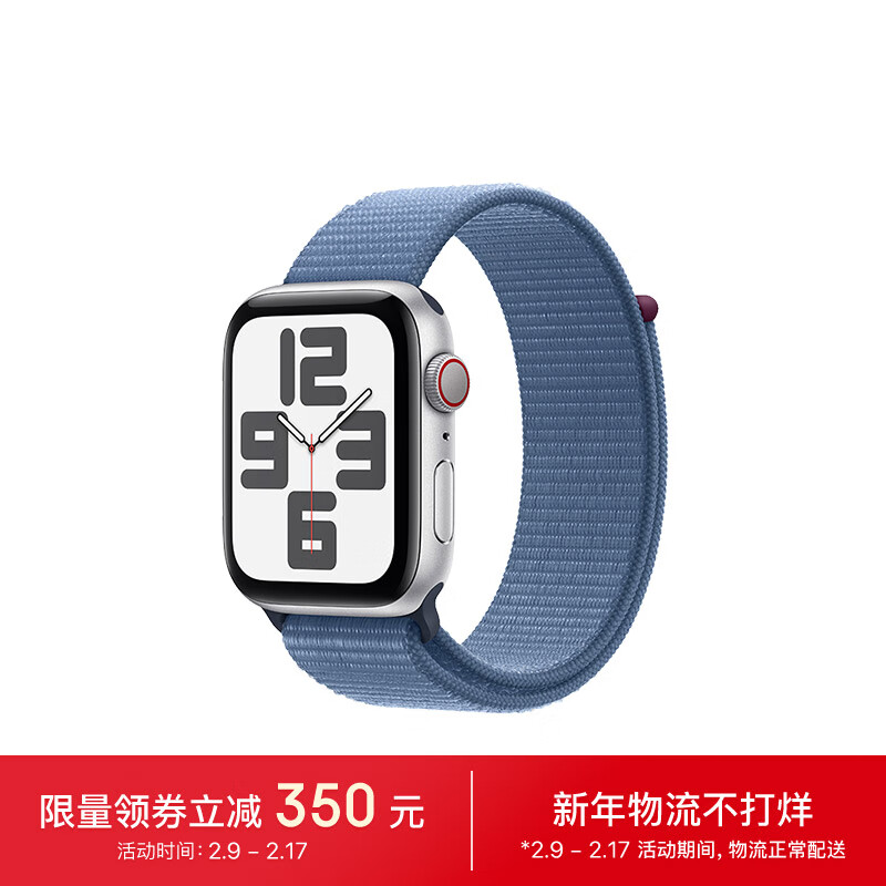 Apple/苹果 Watch SE 2023款智能手表GPS+蜂窝款44毫米银色铝金属表壳凛蓝色回环式运动型表带MRGG3CH/A价格:2599.00元!
