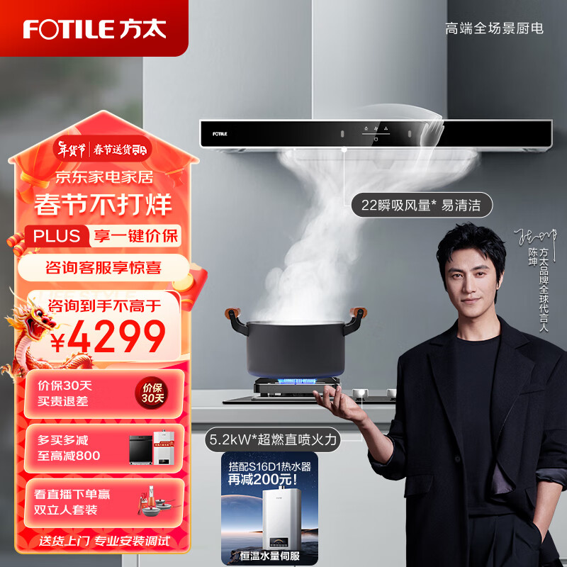 方太抽吸油烟机灶具套装 欧式顶吸烟机燃气灶套餐 22瞬吸风量挥手智控 家用烟灶 EMC5A+02-TH27B天然气价格:4299.00元!