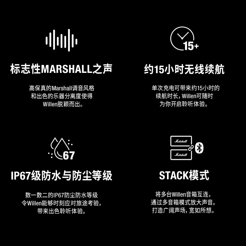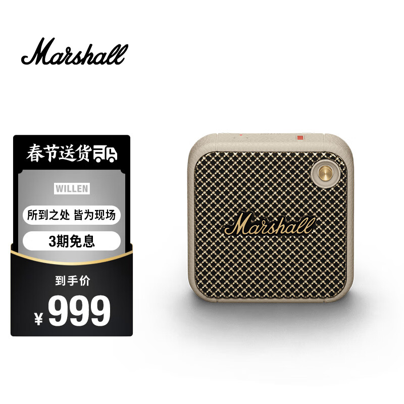 MARSHALL(马歇尔)WILLEN音箱便携式蓝牙无线家用户外防尘防水小音响 油彩白价格:999.00元!