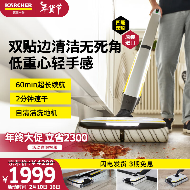 KARCHER德国卡赫 无线智能洗地机 洗扫拖一体机清洁机家用电动拖把 拖擦地 欧洲原装进口FC7价格:1999.00元!