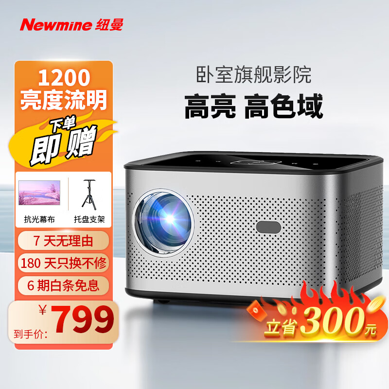 纽曼X1Pro 投影仪家用 办公室投影机家庭影院 卧室音响智能白天宿舍超高清手机投影价格:949.00元!
