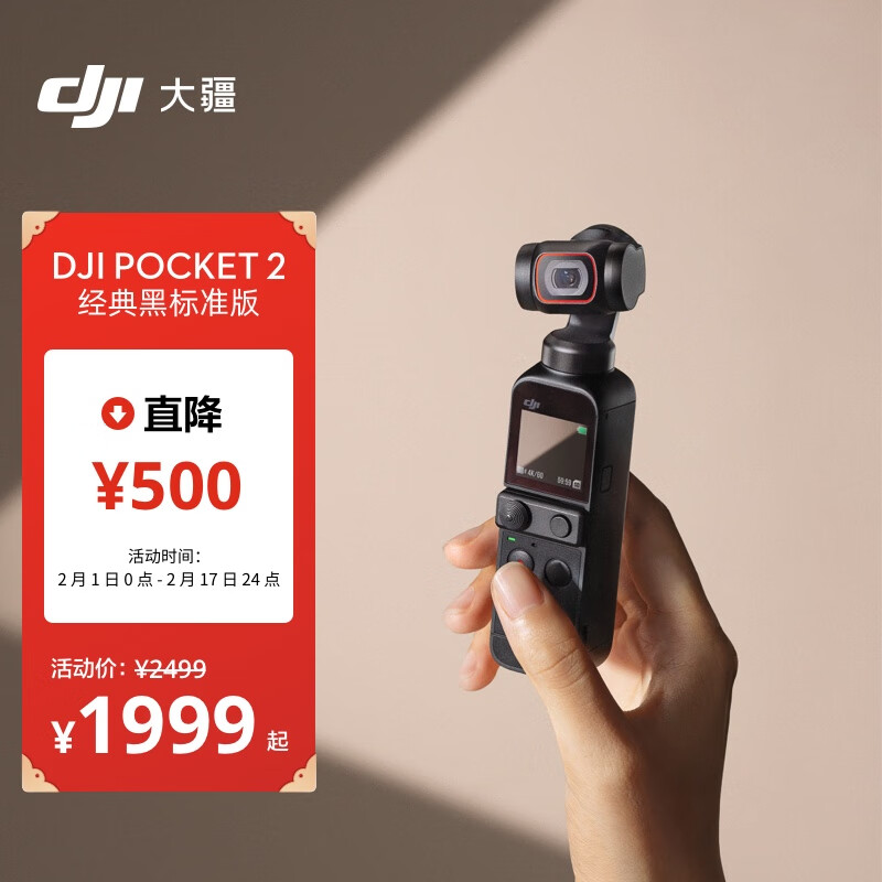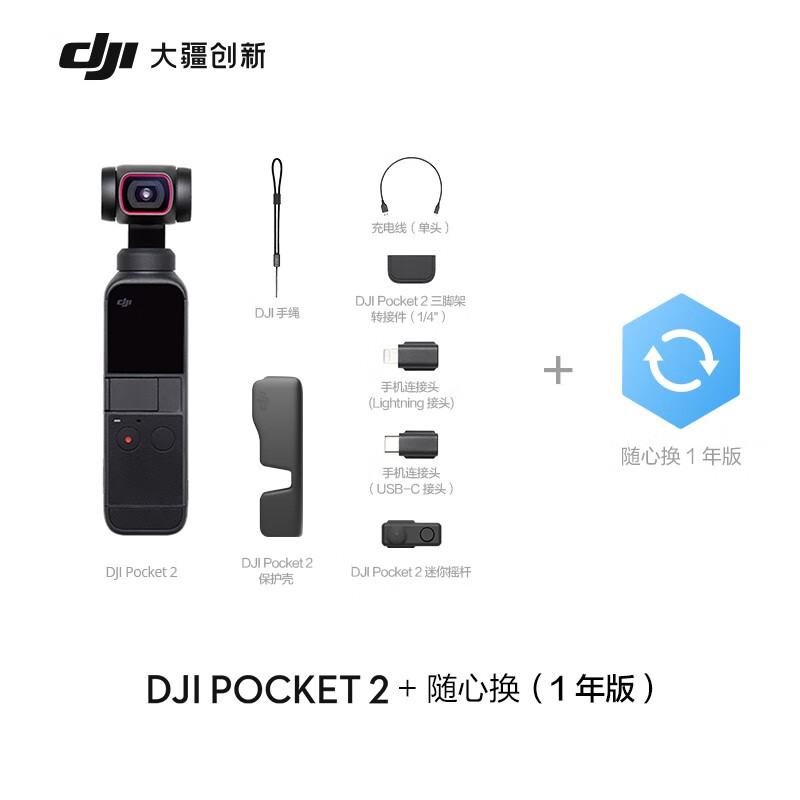 大疆 DJI Pocket 2 灵眸云台相机 小型防抖运动相机 智能美颜摄像机便携式 vlog全景相机+随心换1年版价格:2198.00元!