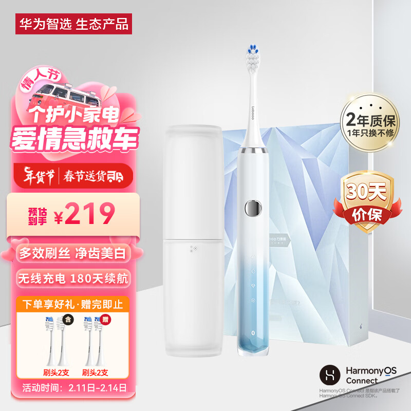 华为智选 力博得电动牙刷 智能牙刷 新年礼物 情人节礼物 长续航 牙医推荐 冰山款 冰晶蓝(支持鸿蒙智联)价格:259.00元!