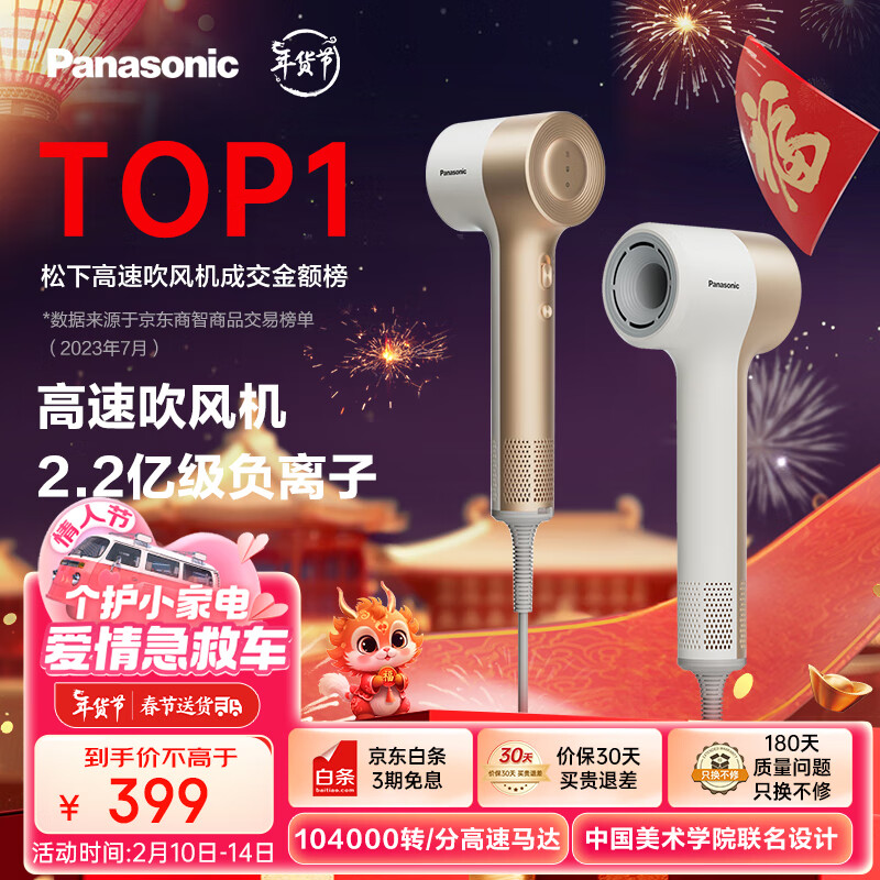 松下(Panasonic)缤纷筒高速吹风机负离子低噪音大风力家用新年礼物电吹风速干护发家用大功率吹风筒NE7H达芬奇白价格:459.00元!