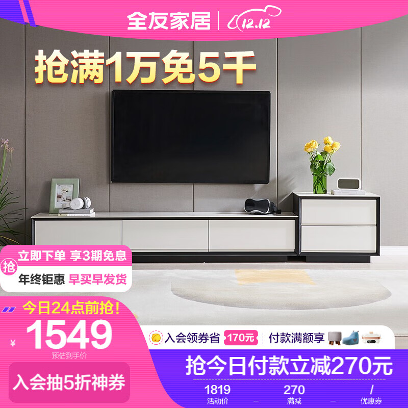 全友家居 电视柜大小户型岩板收纳附柜现代客厅家具DW1055价格:1819.00元!