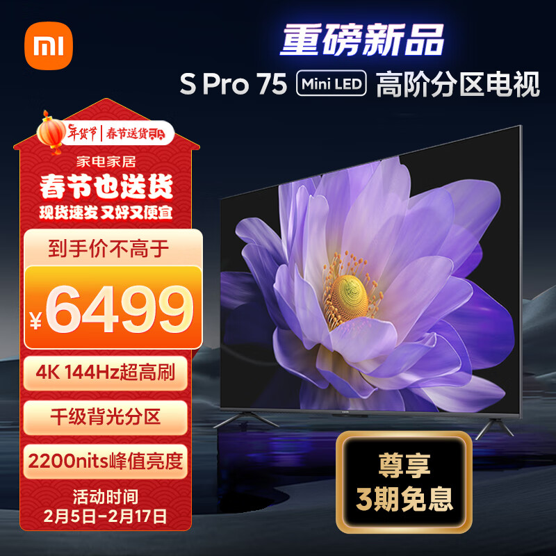 小米电视 S Pro 75英寸 Mini LED 2200nits 1152分区 4GB+64GB 小米澎湃OS系统 液晶电视机L75MA-SM价格:6499.00元!