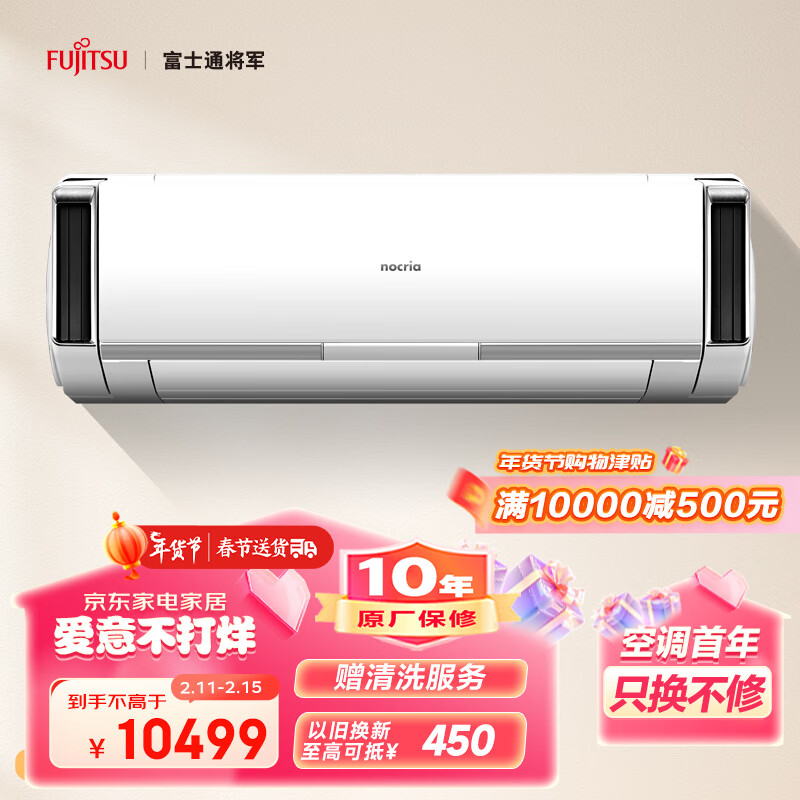 富士通 22-34㎡适用 新2级能效 2匹 诺可力LX系列 以旧换新 壁挂式家用空调ASQA18LXCA (KFR-50GW/Bpxa)价格:10999.00元!
