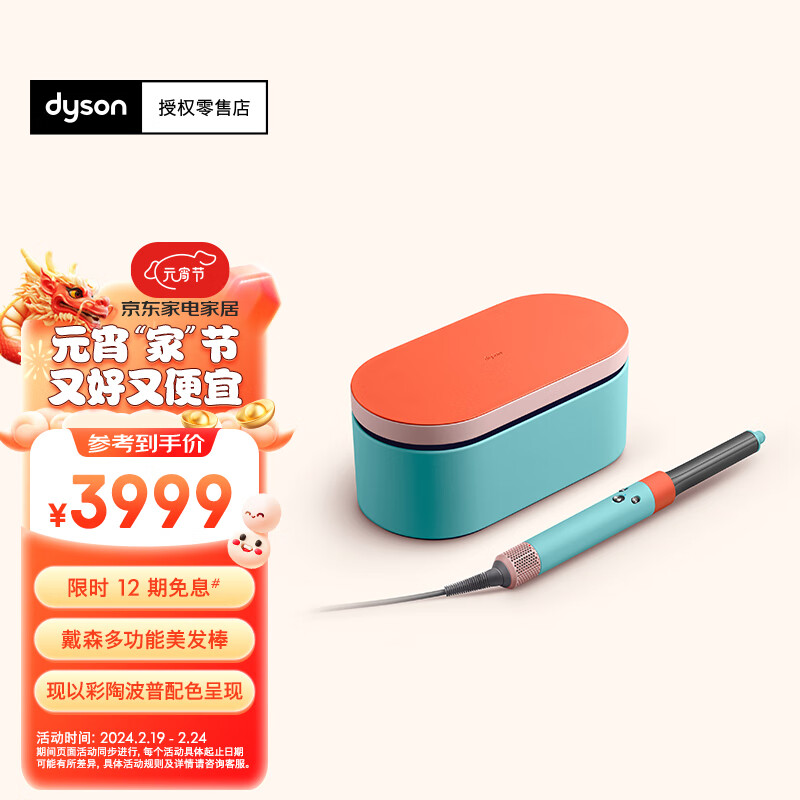 戴森(DYSON)多功能美发棒 Airwrap Complete空气卷发棒 多功能合一 旗舰套装 彩陶波普 长发版价格:3999.00元!