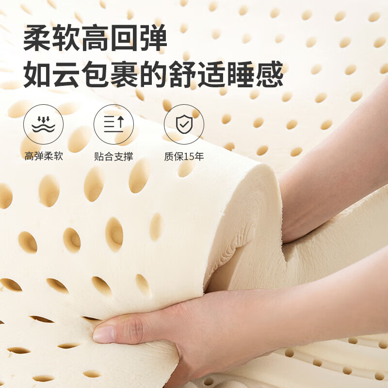 4、第二次购买,家里原来的床垫有些硬,加5cm85D的乳胶垫后,整张床都舒适了。透气性不错,还送了两个乳胶枕,快递员冒雨送上楼,好评
