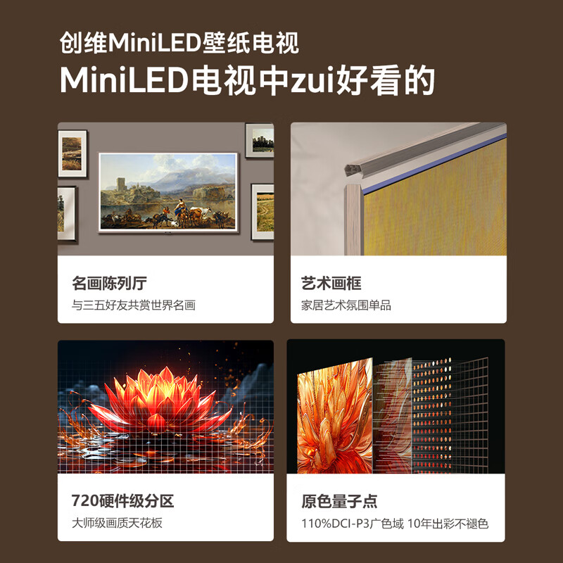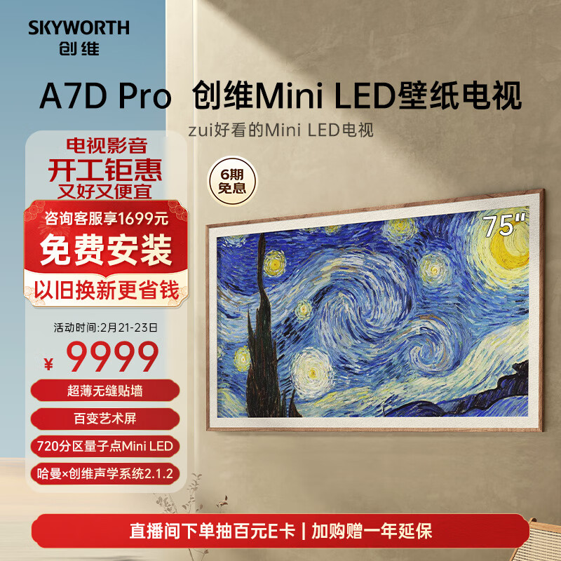 创维壁纸电视75A7D Pro 75英寸龙年定制超薄壁画艺术电视机 无缝贴墙 720分区量子点Mini LED液晶电视价格:9999.00元!