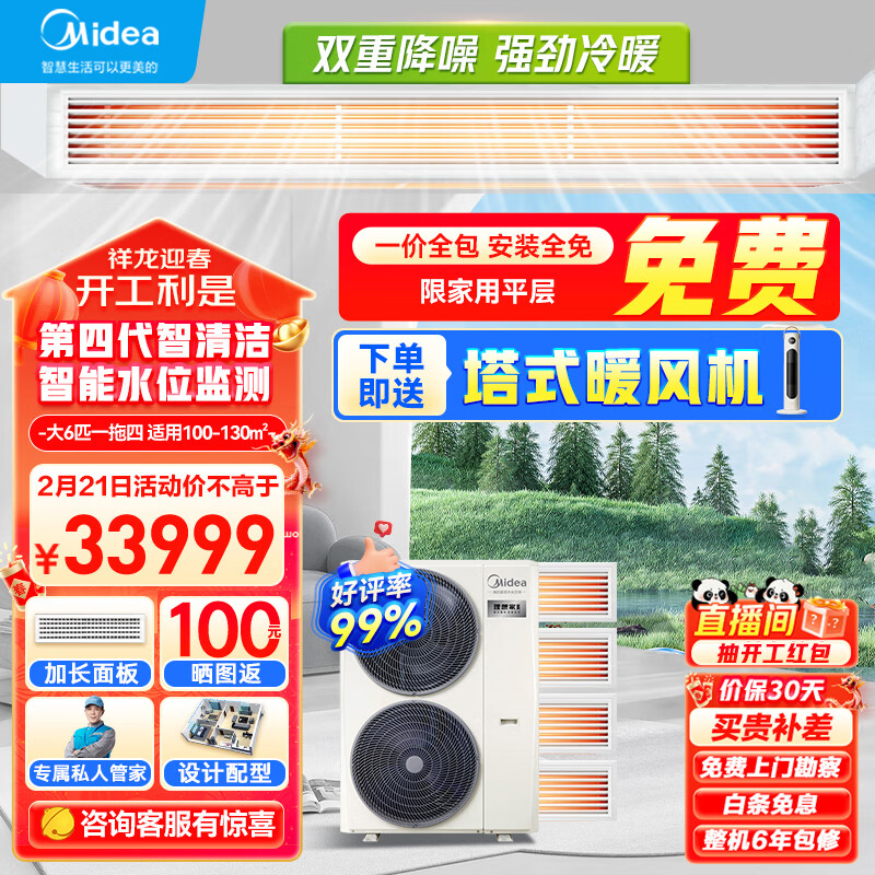 美的(Midea)中央空调一拖四风管机大6匹小多联机理想家三代一级能效快速冷暖智能清洁MJV-160W-E01-LXⅢ价格:34099.00元!