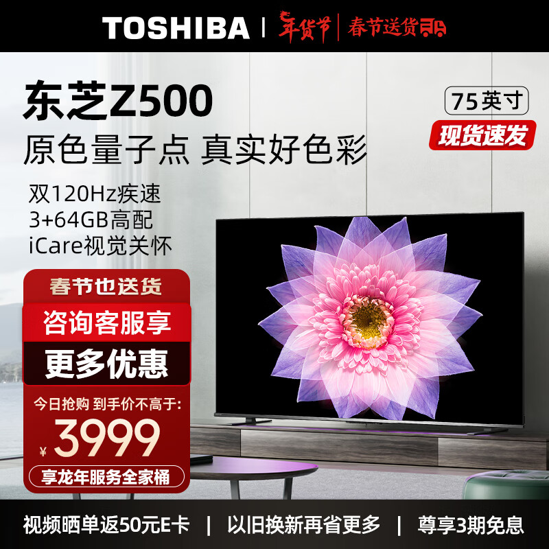 东芝75Z500MF 75英寸量子点电视(M540F进阶款)120Hz高刷 4K超清低蓝光 液晶平板游戏电视机3+64GB价格:3999.00元!