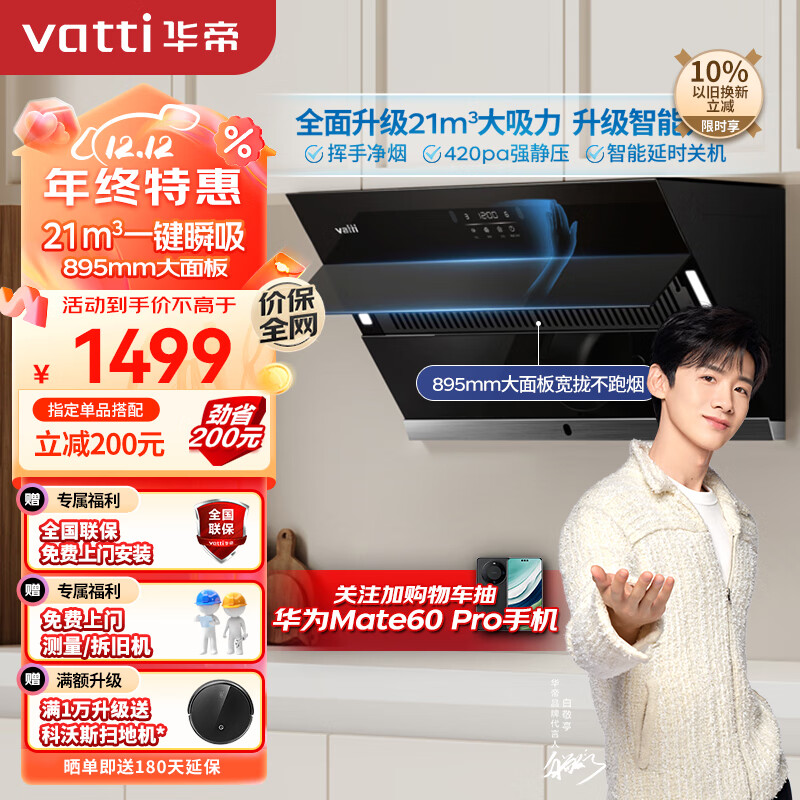 华帝(VATTI) 抽油烟机侧吸式抽油烟机家用吸油烟机 自动开合 21风量瞬吸大吸力 i11127S价格:1499.00元!