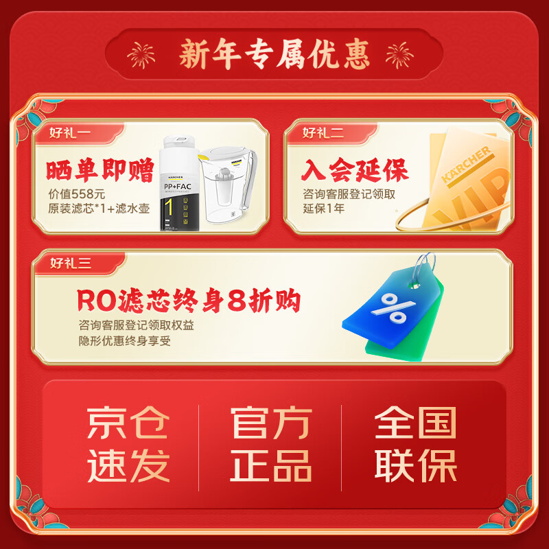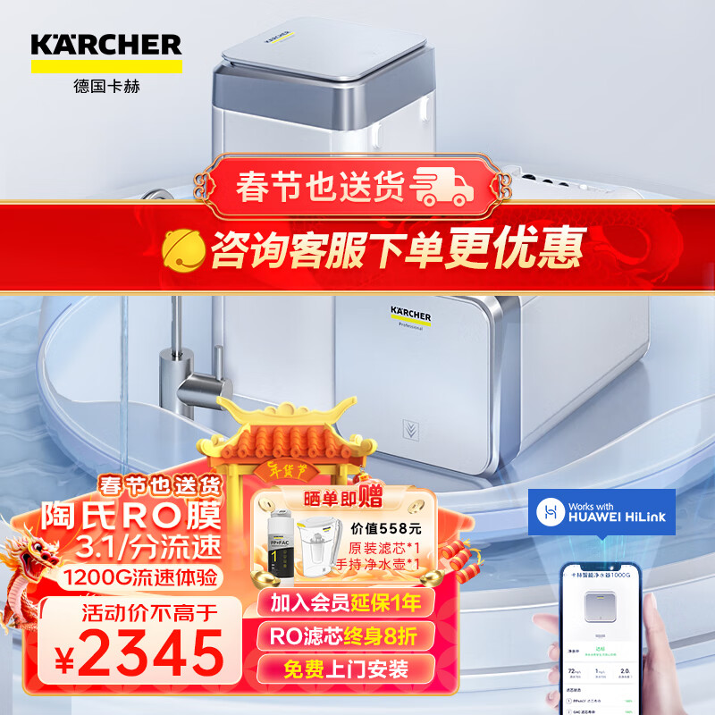 KARCHER净水器家用直饮净水机1000G陶氏RO反渗透膜过滤器 3.1升/分 0阻垢剂 1200G流速体验价格:3105.00元!