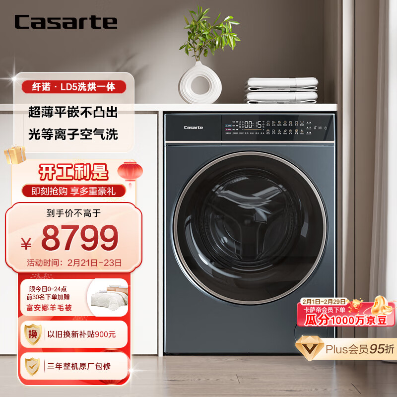 卡萨帝(Casarte)滚筒洗衣机全自动 10公斤洗烘一体机 直驱变频 超薄大筒径 纯平嵌入光等离子 纤诺和美HD10LD5ELU1价格:8799.00元!