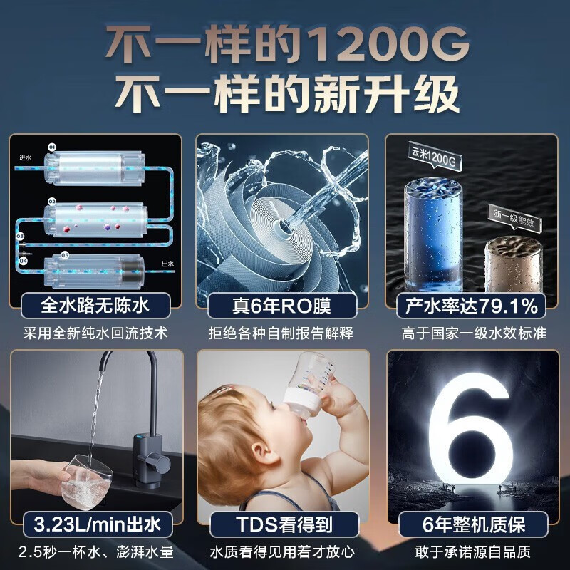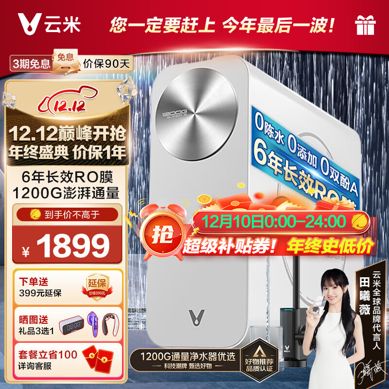 云米(VIOMI) 净水器家用厨下净水机 零陈水净化 反渗透纯水机大流量1200G直饮机真 净水机加热直饮一体机 【单品1200G净水器】6年RO膜价格:2399.00元!