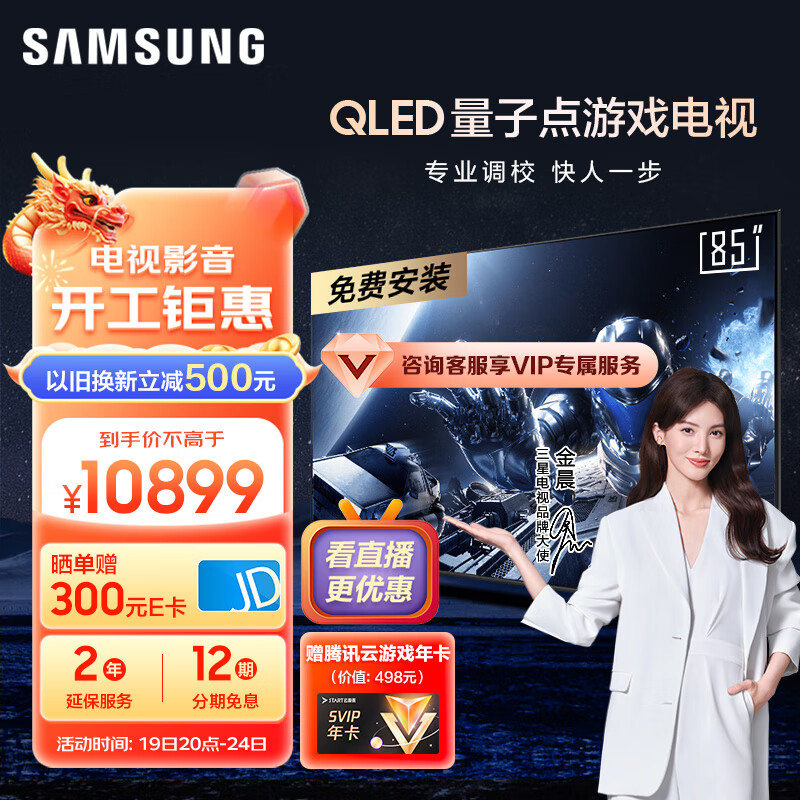 三星(SAMSUNG)85QX3C 85英寸 QLED量子点 专业游戏电视 无开机广告 超薄4K 120Hz HDMI2.1 QA85QX3CAJXXZ价格:10899.00元!