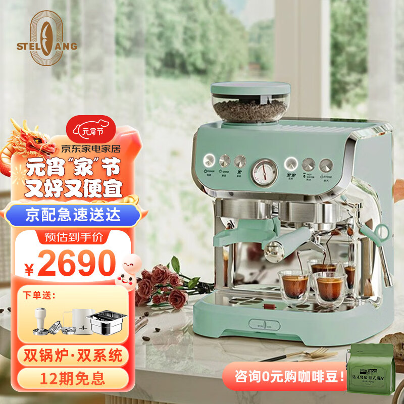 雪特朗(STELANG) 双锅炉双系统意式美式半自动咖啡机磨豆机家用强力蒸汽打奶泡研磨一体机意式咖啡机价格:2690.00元!