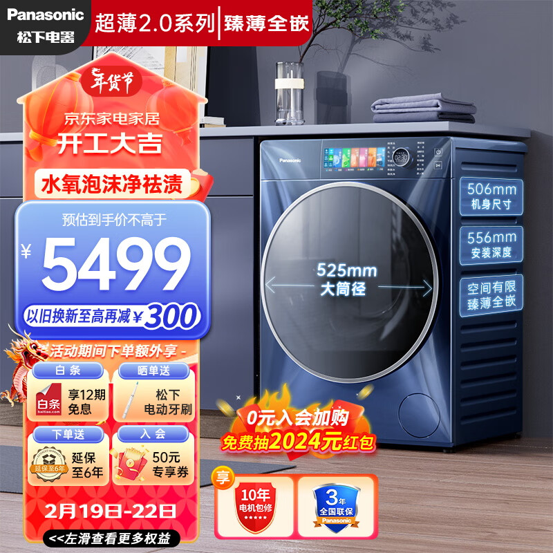 松下(Panasonic)滚筒洗衣机全自动 506超薄2.0【臻薄全嵌轻奢版】10公斤水氧泡沫净光动银 彩屏户外服XQG100-831M价格:5499.00元!
