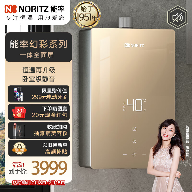 能率(NORITZ)燃气热水器16升 屏玻璃面板 全屋恒温沐浴 卧室级静音 天然气GQ-16EP5FEX(JSQ31-EP5)防冻价格:3999.00元!