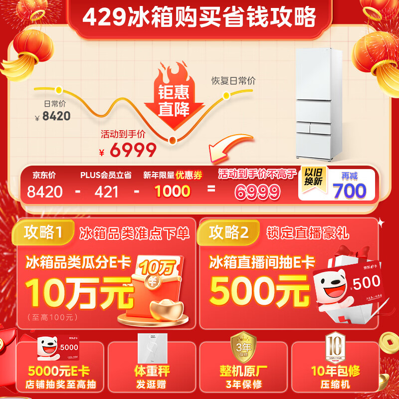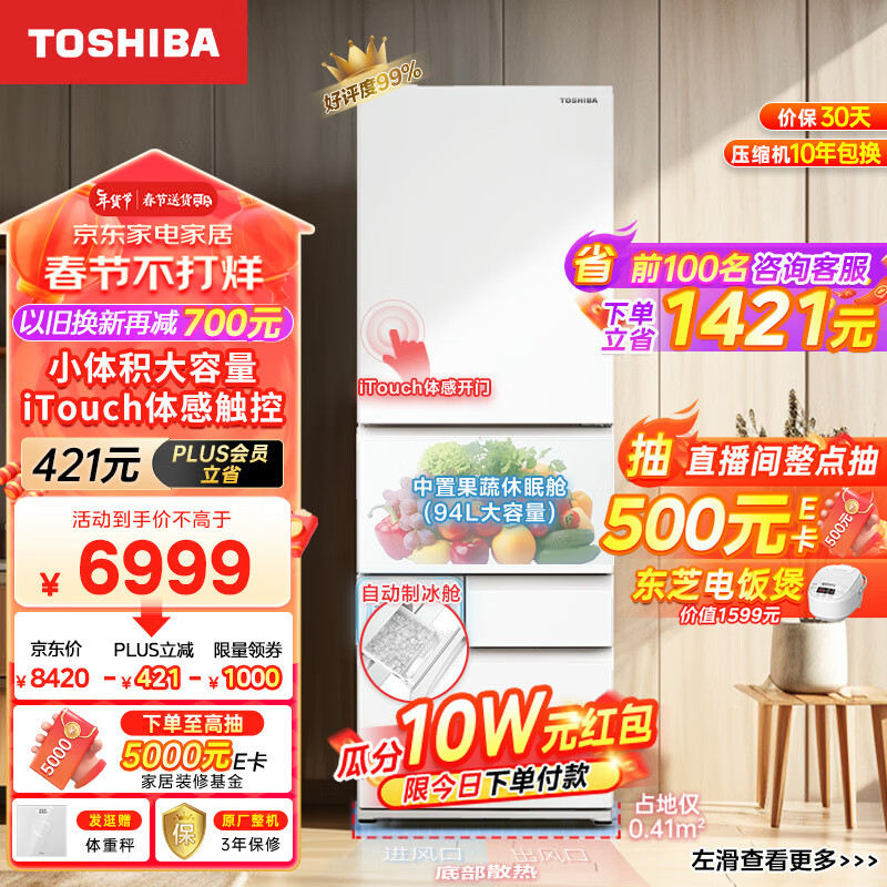 东芝(TOSHIBA)小白桃 日式五门多门小户型高端家用电冰箱超薄嵌入式自动制冰无霜变频GR-RM429WE-PG2B3富士白价格:8411.00元!
