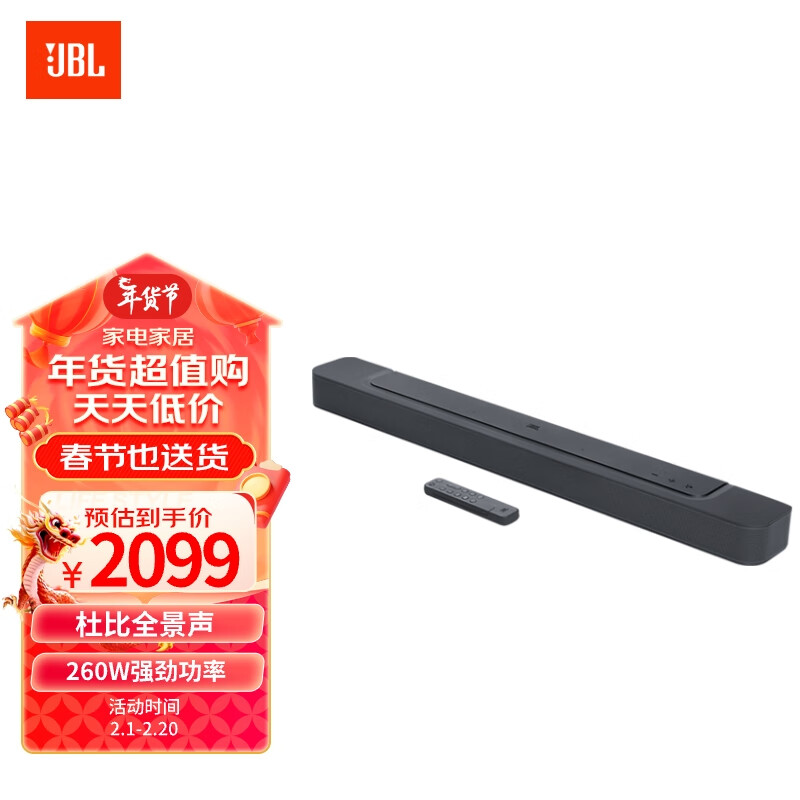 JBL BAR300 紧凑型回音壁 电视音响 5.0杜比全景声 一体式 条形音箱 无线家庭音箱家用 Soundbar价格:2399.00元!