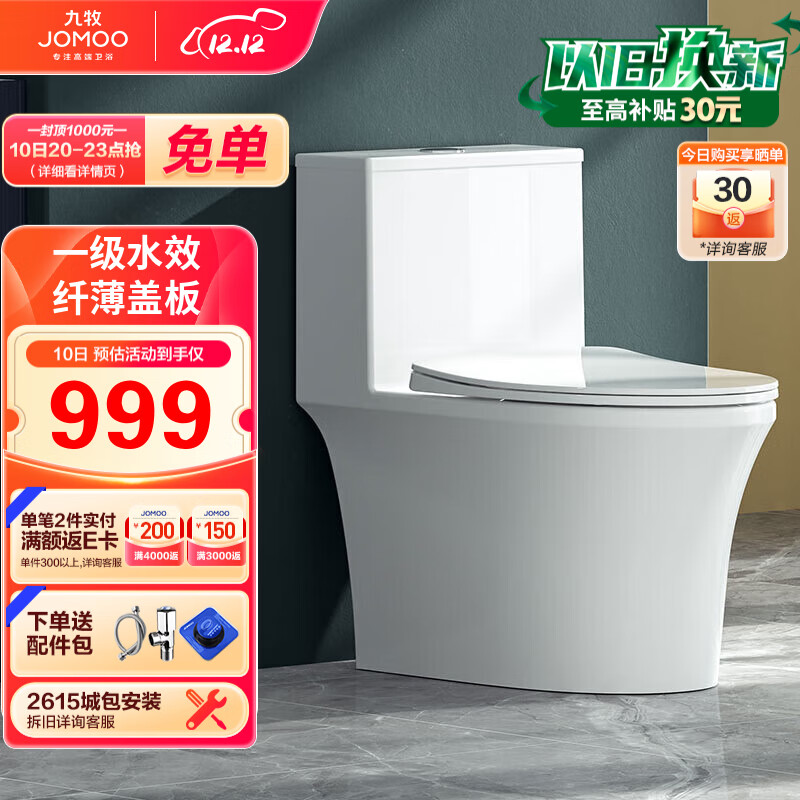 九牧(JOMOO)11262-2-1/41K-2家用马桶卫浴虹吸式节水抗菌易洁坐便器400坑距价格:1199.00元!