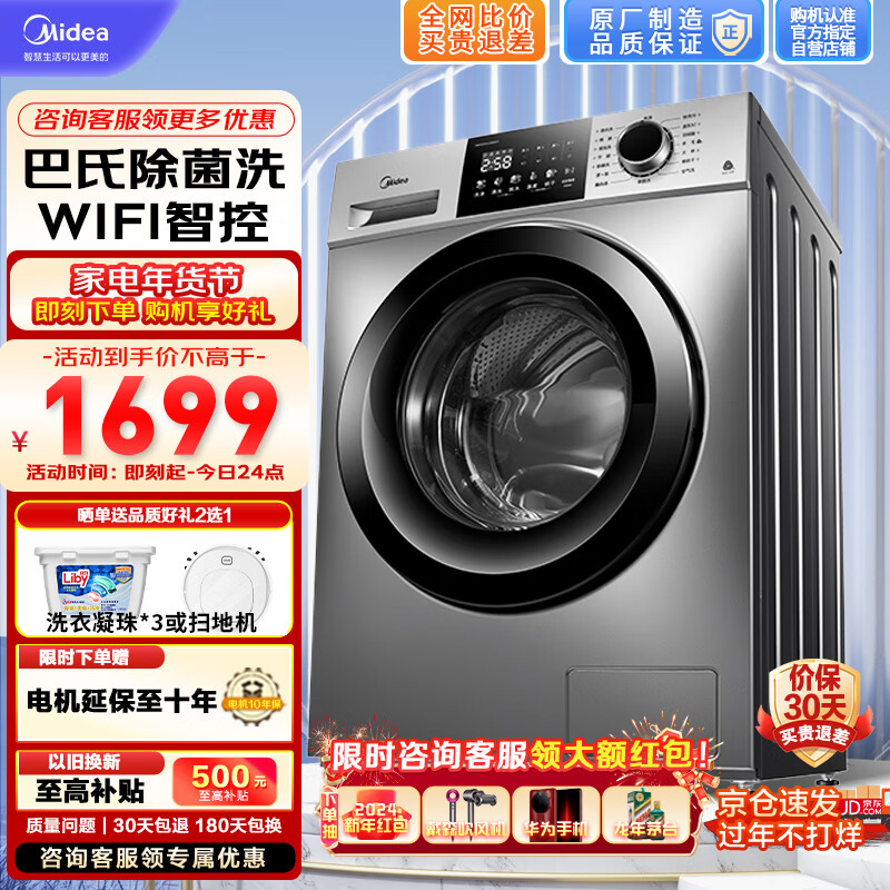 美的(Midea)全自动 滚筒10公斤大容量洗衣机 巴氏除菌洗 专业羽绒服洗 BLDC变频电机 以旧换新MG100VC133WY价格:1699.00元!
