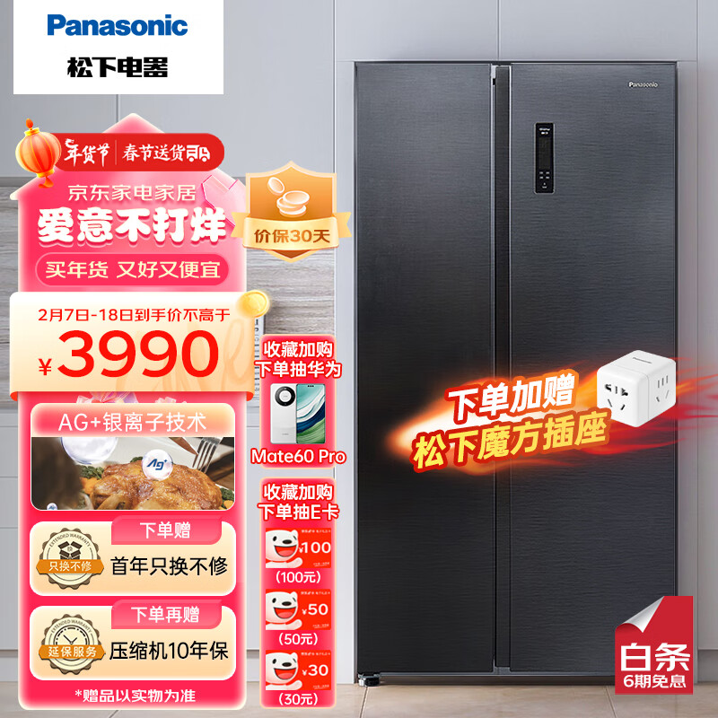 松下(Panasonic)对开门632升大容量变频风冷无霜双开门冰箱新一级能效银离子净味优选NR-B631MS-BH以旧换新价格:4590.00元!