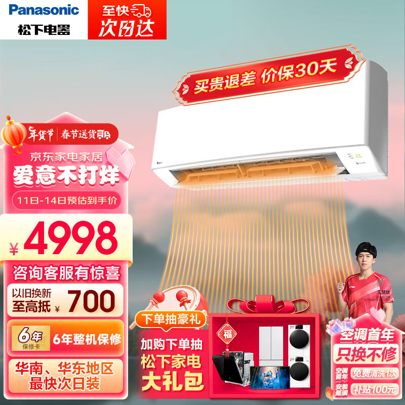松下空调滢风系列 2匹 新三级能效 变频冷暖壁挂式空调WIFI智能挂机 柔湿制冷 E18KR30 以旧换新价格:4998.00元!
