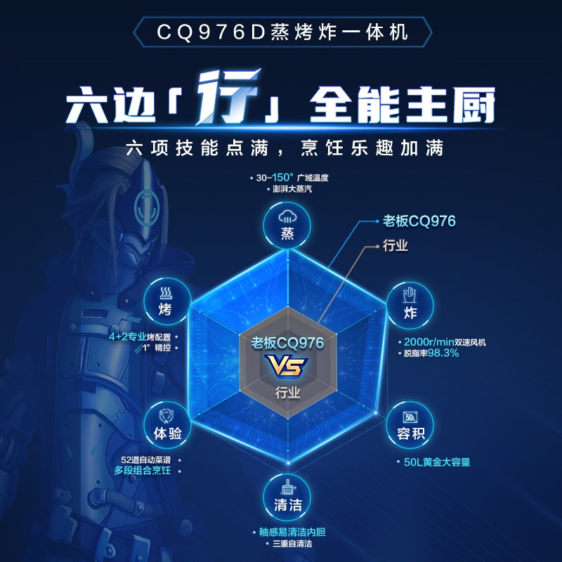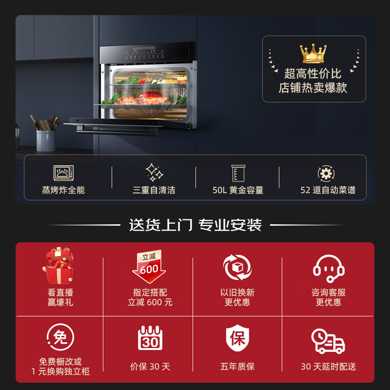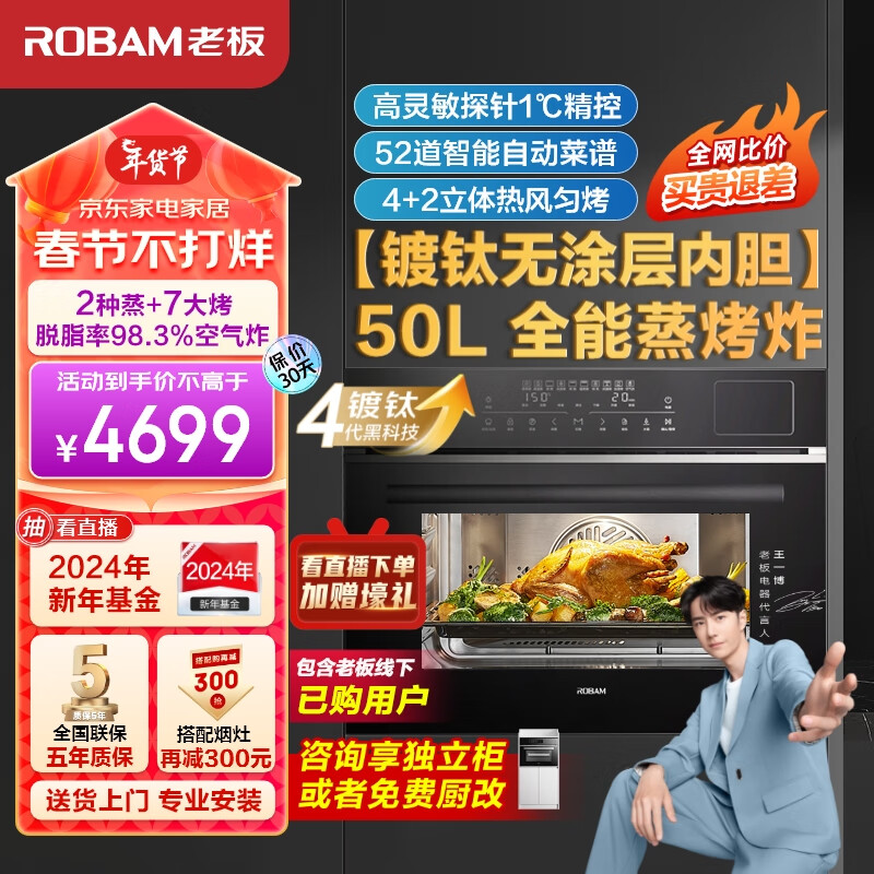 老板(Robam)CQ976D蒸烤箱一体机嵌入式50L家用全能蒸烤炸3合1蒸箱烤箱空气炸专业1℃精控三重自清洁釉感自净价格:4699.00元!