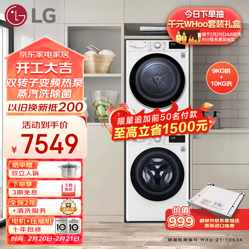 LG纤慧洗烘套装10kg蒸汽除菌洗衣机+9kg原装进口双转子变频热泵烘干机 除菌除螨FCY10Y4W+RC90V9AV6W价格:9049.00元!